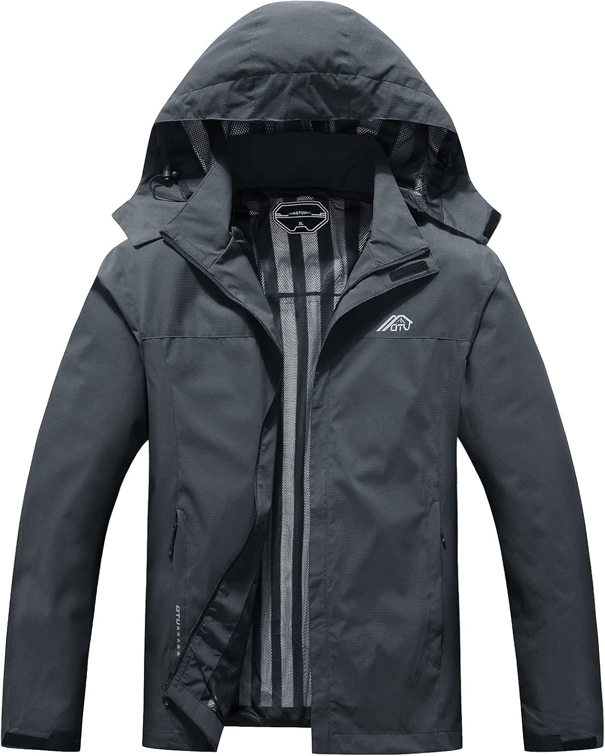 Men's Lightweight Waterproof Hooded Rain Jacket Outdoor Raincoat Shell Jacket for Hiking Travel