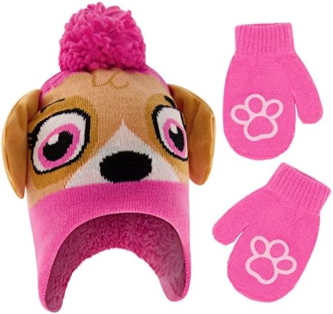 Nickelodeon girls Winter Hat and Mittens Set, Paw Patrol's Marshall, Chase and Skye Toddler Beanie for Ages 2-4