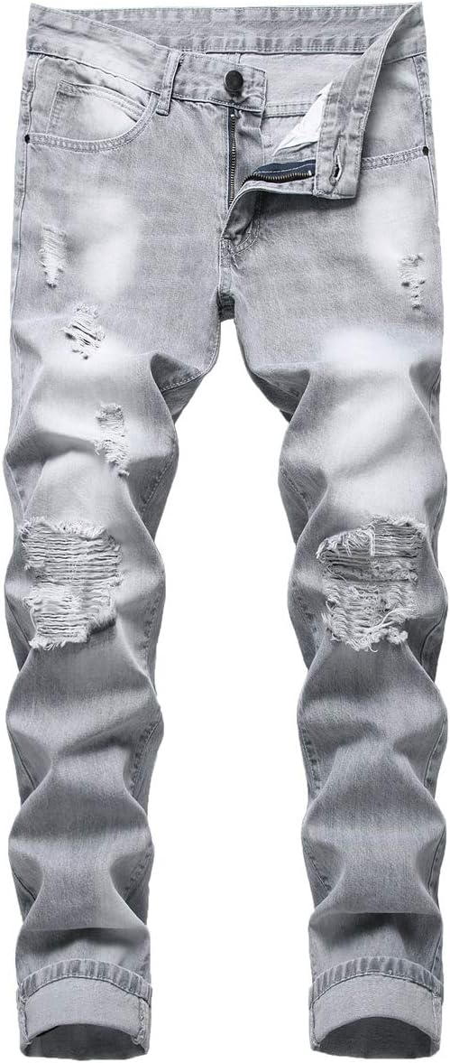 LZLER Mens Ripped Jeans,Distressed Destroyed Slim Fit Straight Leg Denim Pant with Holes