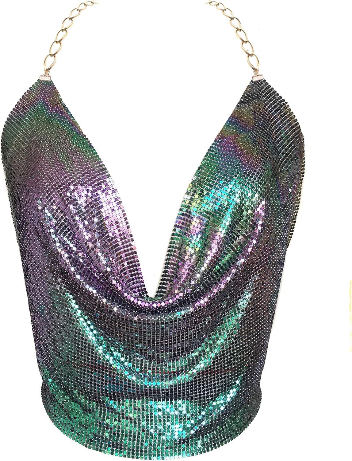 FEATURES: Sexy,Sleeveless,Lace Up Backless,Draped Front ,Solid Basic,Shiny Crop Top Shirts,Sexy Deep V Neck Halter Metal Tank Top,Adjustable Chain,Loose Fit,Dressy,Simply And Classic Style,Reversible,Unlined,Flowy Chainmail Shirt,Reversible.MATERIAL: Shiny High Quality Smooth Alloy, Metal Sequins Mesh. This tank top shirt is made of high quality crystal rhinestone and metal chain, cool and sexy, a gorgeous accessory for all mujer and girls.Easy To Match With Clothes: our tank top are simply designed, but also classic styles to wear in everyday life.Abundant Color Selections: We provide you with different colors, give you more choices, These colors are easy matching ones, can fit your different clothes. Kindly Notes:1) Please notice the size carefully before ordering.and Please allow slight dimension difference due to different manual measurement.2)Some patterns have detachable chains; You can adjust it to your size by changing the length of extension chains.3)Jewelry often need replacement, should avoid prolonged wearing the same piece of jewelry, especially in the hot summer.4) The color maybe a little difference compare the image with actual item due to monitor reflect.5)Hand Wash, can use soft brush to sweep the surface of clothes to removing surface stains.SERVICE:Your satisfaction is our goal of service. If there is any problem with the item after you get it, please feel free to contact us, we will try our best to resolve all the problems for you.