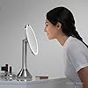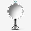 simplehuman 8" Round Sensor Makeup Mirror with Touch-Control Dual Light Settings, 5x Magnification, Rechargeable and Cordless, Brushed Stainless Steel