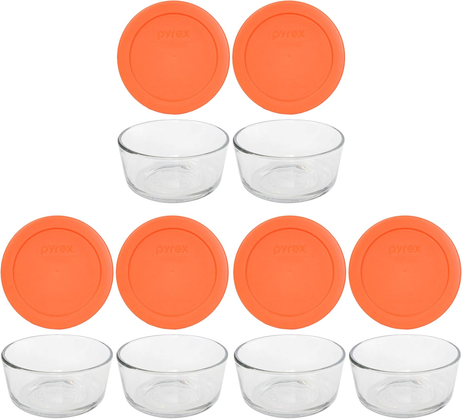 Included: Pyrex (6) 7200 2-Cup Glass Bowls & (6) 7200-PC Orange Lids - Made in the USA