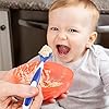Check the temp of baby’s food with just the tip of spoon! Dr. Brown’s™ Designed to Nourish™ TempCheck Spoons turn clear when food is too hot. Be sure baby’s food is safe to eat with TempCheck Spoons, that start to change from color to clear when food is roughly 105 degrees F (40.56 C) and higher. Made of soft, 100% silicone, this safety spoon is gentle on tender and teething gums. The flexible, shallow scoop is easier for little mouths to use, while the long handle ensures you get every last bite from the jar. You’ll love less mess with the elevated spoon rest. Cleaning is a breeze with this dishwasher and sterilizer safe spoon. The 4-pack TempCheck Spoons feature a variety of rich purple, teal, blue and red colors. BPA-free.