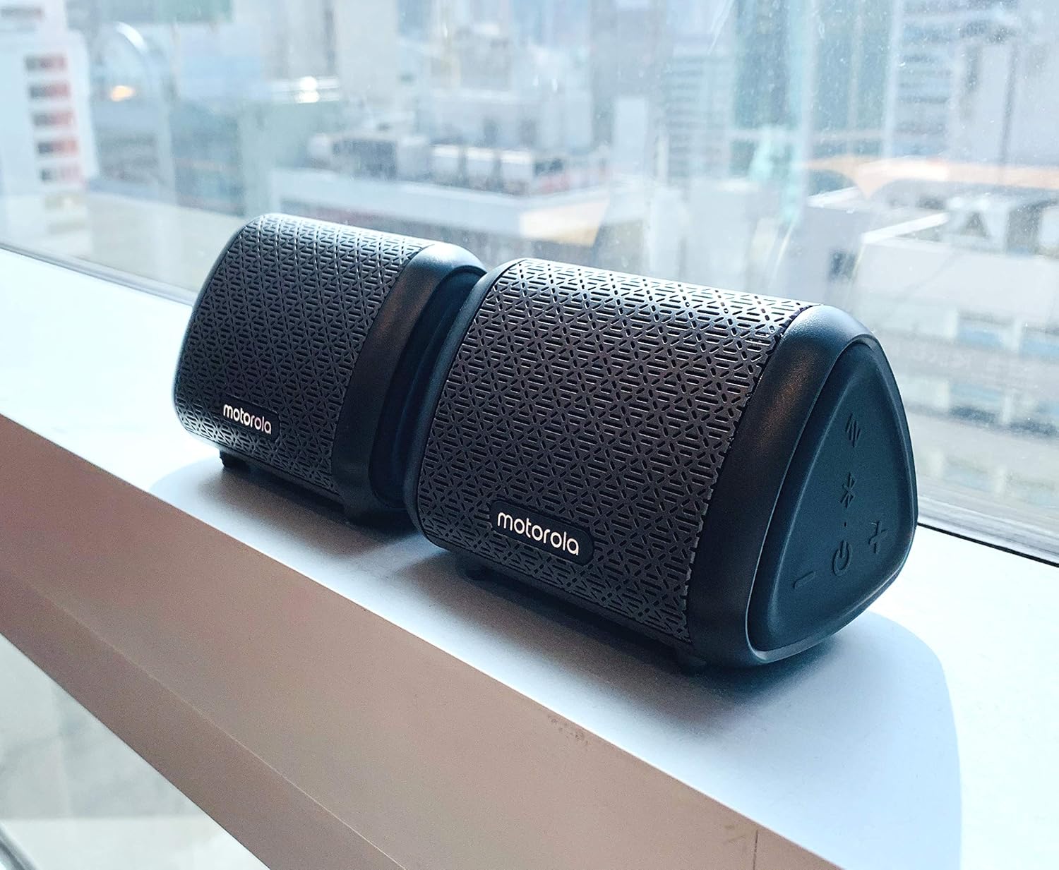 Motorola Sonic Sub 340 Bass Twin (2 Pack) 7W Speakers, IPX5 Waterproof with Siri, Alexa and Google Assist Compatibility - Black