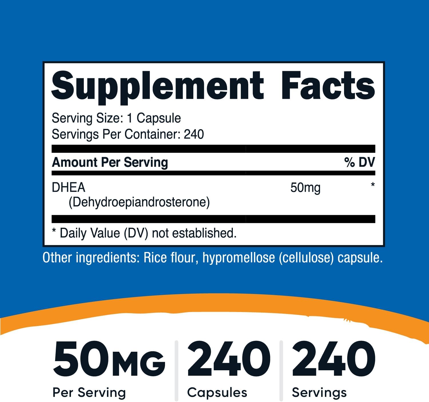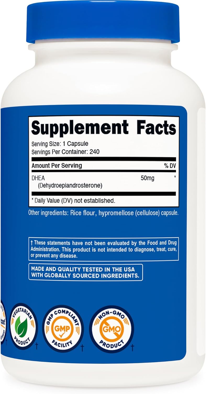 Nutricost DHEA 50mg, 240 Cápsulas - Sin Gluten, Sin Soja, No OGM, Suplemento