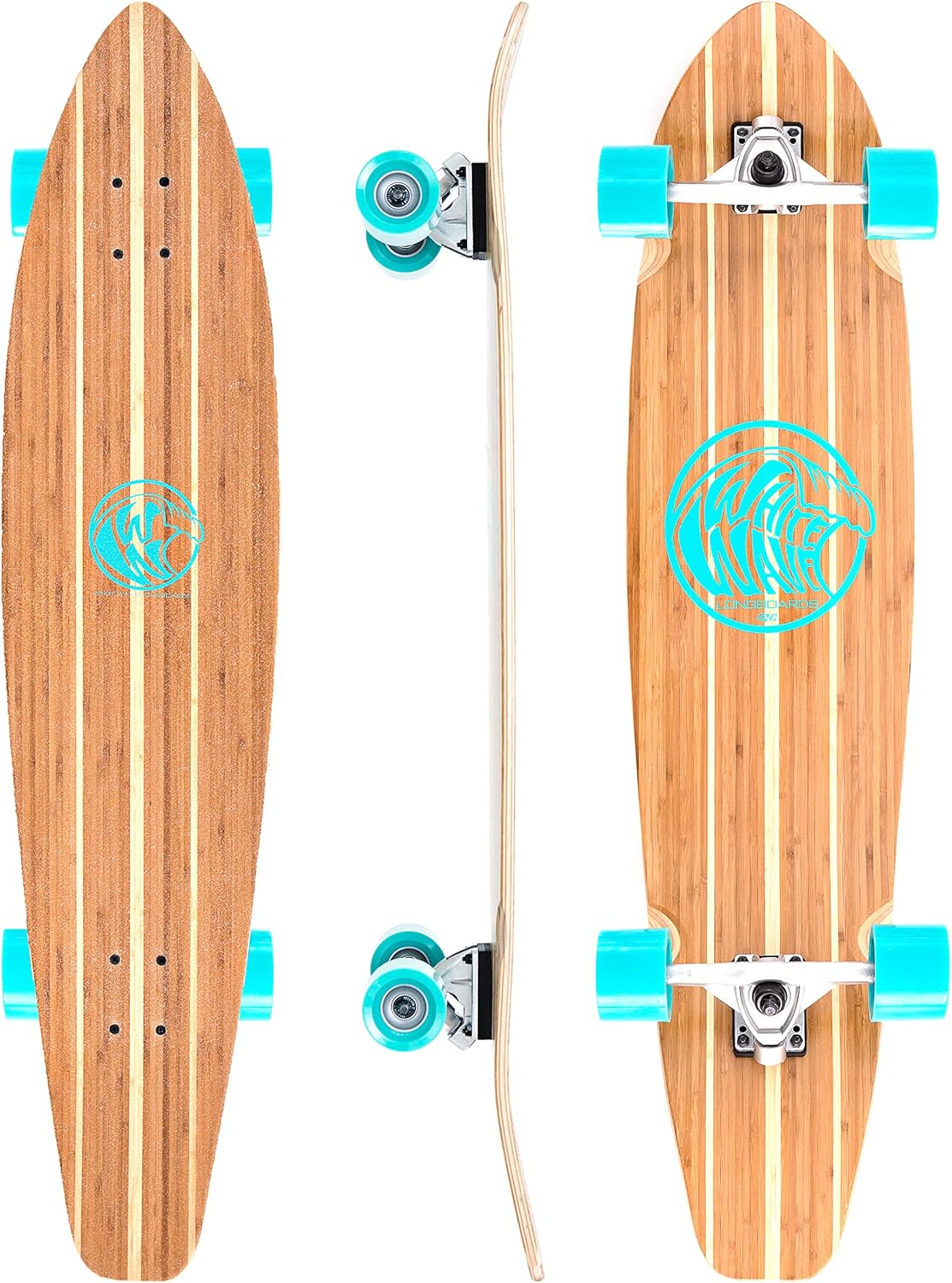 Adecuado para niños patinadores y adolescentes: 36 pulgadas de largo x 9 pulgadas de ancho. Una tabla de bambú multicapa con núcleo de arce canadiense. La construcción de 7 capas lo convierte en un longboard duradero y rígido, diseñado para principiantes que recién se están iniciando en el mundo del longboard y para ciclistas de nivel intermedio que buscan mejorar sus habilidades de descenso y freeride.