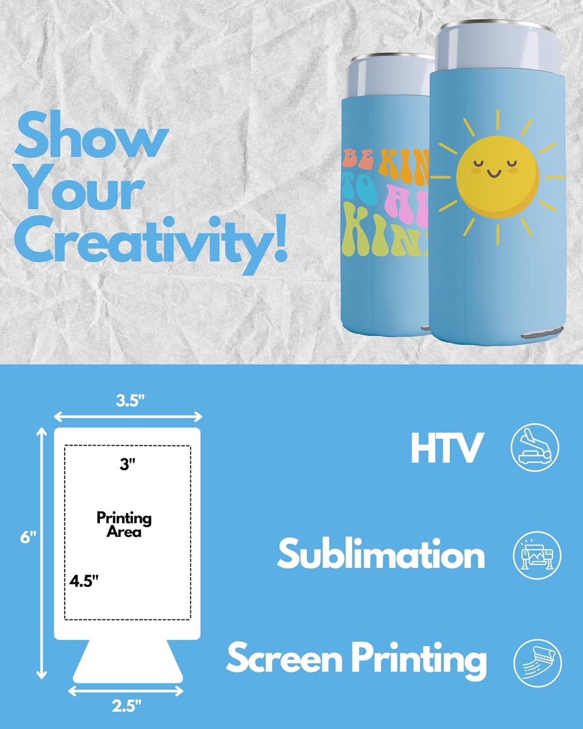 🎨 Customization - Personalize your Can Sleeves with screen printing, heat press, heat transfer vinyl (HTV), embroidery, or simply use regular markers!