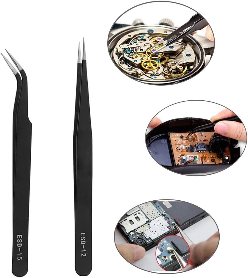【Precision Tweezers】Every tweezers is plated resistive ESD coating. The cover of tweezers takes anti-skid treatment to improve work efficiency