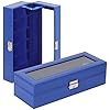 NEX Watch Case, 6 Slot Leather Watch Box Display Case Organizer Glass Jewelry Storage