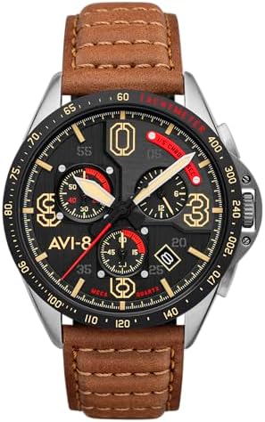 AVI-8 Mens 43mm P-51 Mustang Blakeslee Chronograph Japanese Meca-Quartz Pilot Watch with Leather or Stainless Steel Strap AV-4077