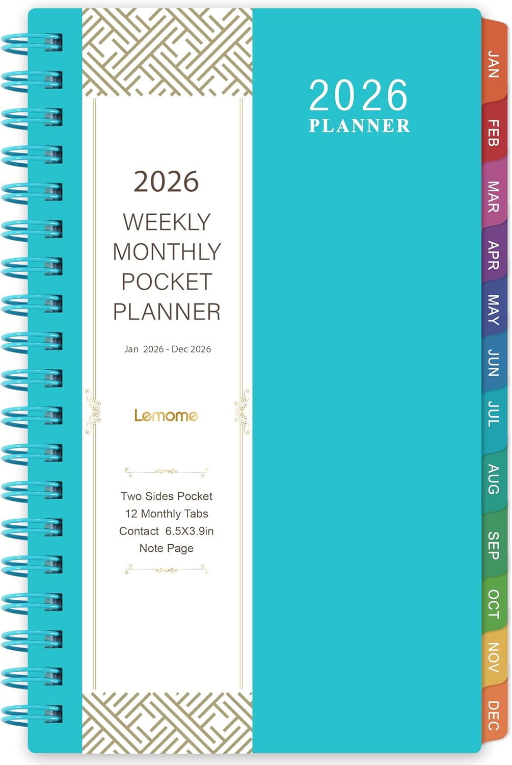 2026 Pocket Calendar/Planner - Weekly & Monthly Pocket Planner for Purse, Jan. 2026 - Dec. 2026, 6.8" x 4.1", Strong Twin - Wire Binding, Plastic Cover