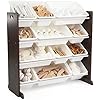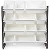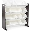 Toy organizer with 12 plastic bins - 8 standard and 4 large bins; measures 34"W x 11"D x 31"H (Humble Crew)