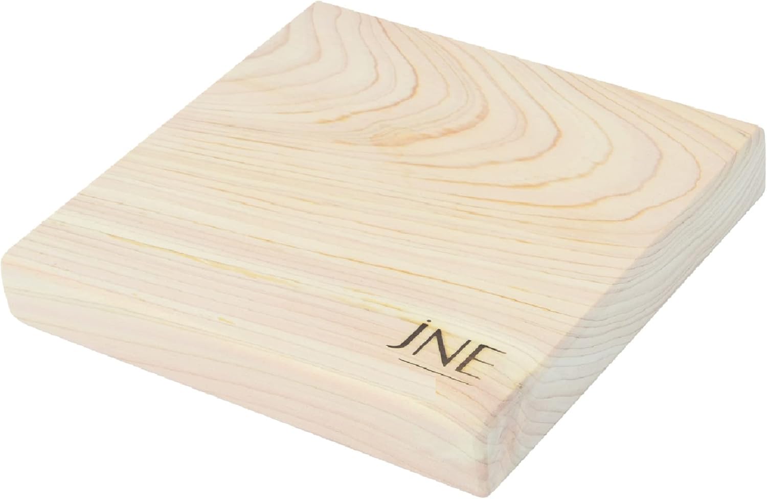 JNE Hinoki Cypress Wood Cutting Board, Cheese Board, Chopping Board, Serving Board for Wine, Crackers, Fruit. Housewarming, Wedding, Birthday gift. Trivet (Square-7x1.2)