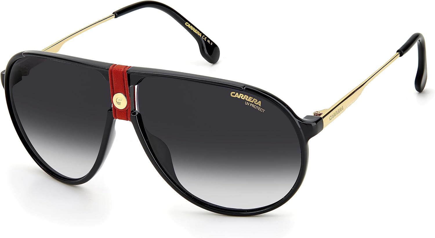 Carrera® Carrera 1034/S aviator-style sunglasses. Injected composite frame with metal temples. Options of polycarbonate lenses or polycarbonate polarized lenses that offer 100% UV protection. Double bridge with branded leather detail. Integrated nose guards with curved ends for a non-slip fit. Branded temples. Protective case included. Imported. Measurements: Eye Size: 63 mm Bridge: 12 mm Temple Size: 140 mm Weight: 1 oz