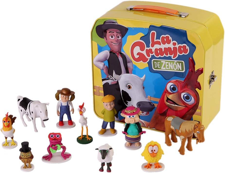 Figuras de Acción Aventura La Granja de Zenon en Caja de Lata, Set de 20 Figuras de Acción Coleccionables, Juguetes para Niños