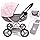 Muñeca Bayer 4 en 1 Cochecito de Muñeca con Set de Accesorios - Muñecas hasta 18" (Rosa/Gris)