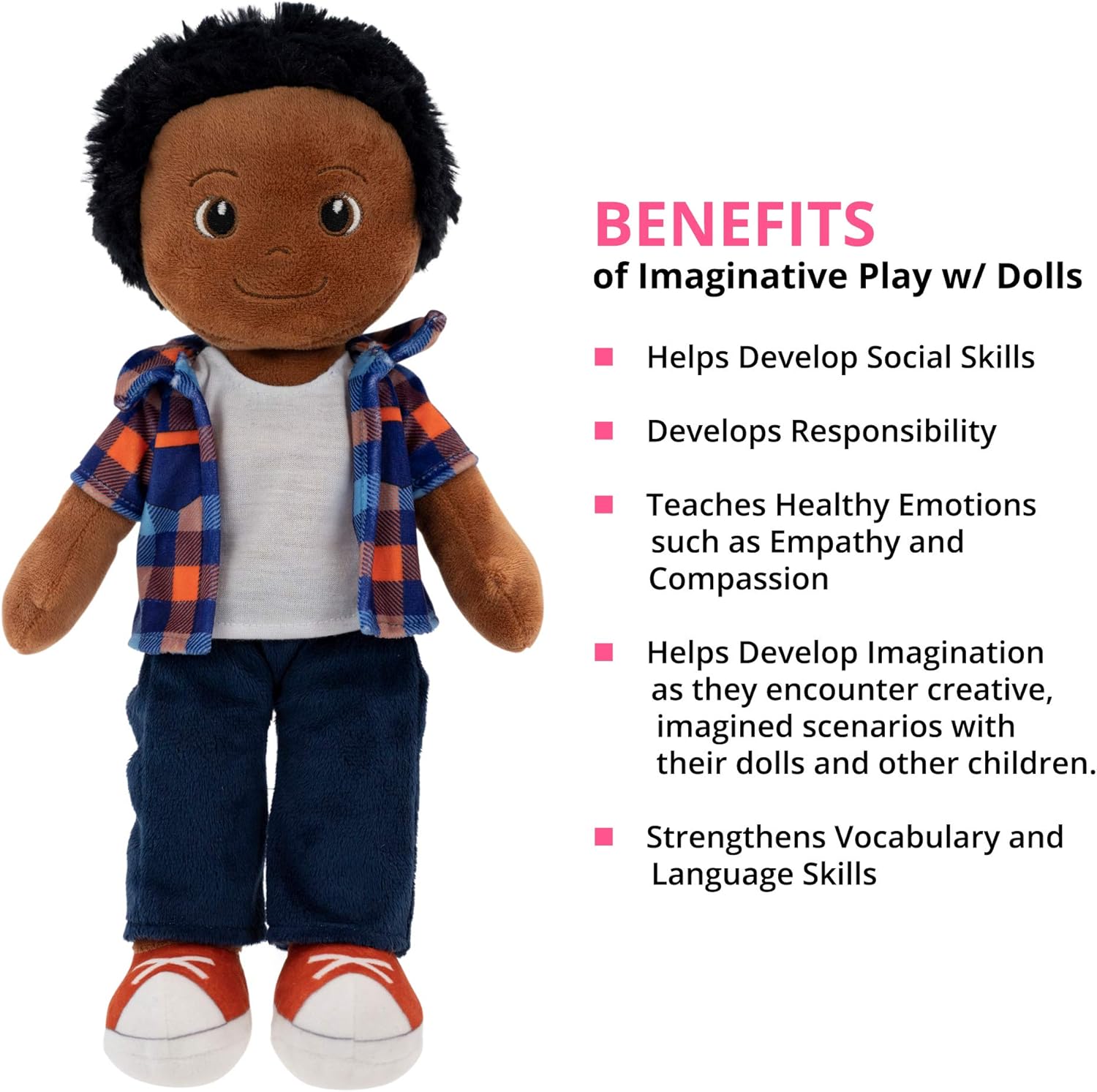 DURABLE AND TRAVEL-FRIENDLY: Built to withstand years of play, this rag doll is soft, lightweight, and easy to carry, making it the ultimate companion for playtime at home, daycare, or on family trips.
