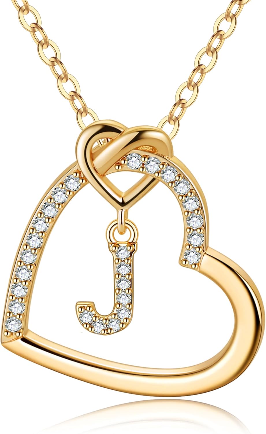 M MOOHAM Heart Initial Necklaces for Girls Teen Women, Cubic Zirconia Heart Pendant Necklace, Dainty Initial Heart Necklace Letter A - Z Jewelry Gifts for Girls Women