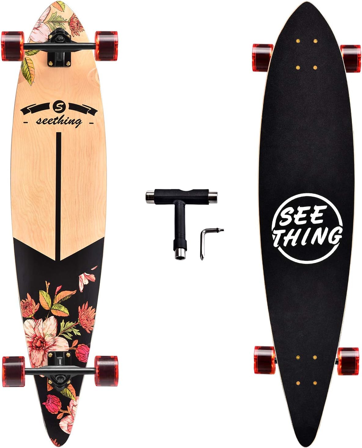seething 42 Inch Longboard Skateboard Complete Cruiser Pintail,The Original Artisan Maple Skateboard Cruiser Pintail for Cruising, Carving, Free-Style and Downhill