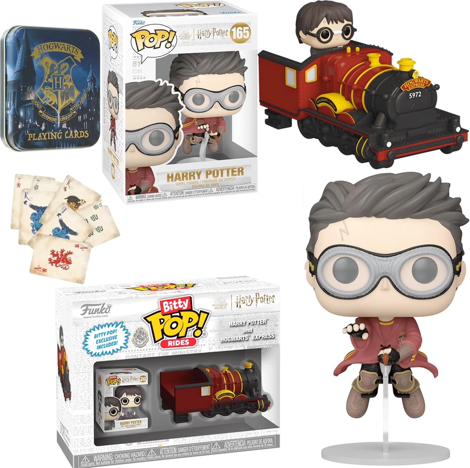 Paquete de Figuras Bitty Pop! Pack de Harry Potter con Figuras de Personajes en Caja Sorpresa Mini + Figuras de Personajes de Magos al Azar + 3D Casa de Hogwarts 4 Artículos
