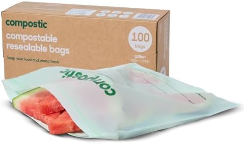 Compostic Home Compostable Resealable Gallon Bags (10.5"x10.5"), Microwave & Freezer Safe, Organic Food Storage Container, 100 Count (Pack of 1)