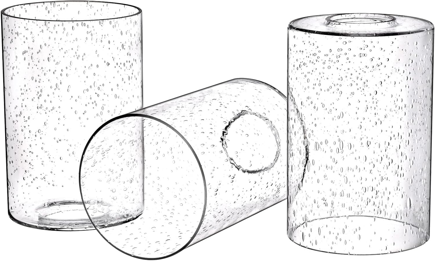 Canomo 3 Packs 6 Inch x 4 Inch Bubble Seeded Glass Light Shade Glass Lamp Shades Cylinder Replacement with 1.65 Inch Fitter for Wall Lamps Chandeliers or Ceiling Light