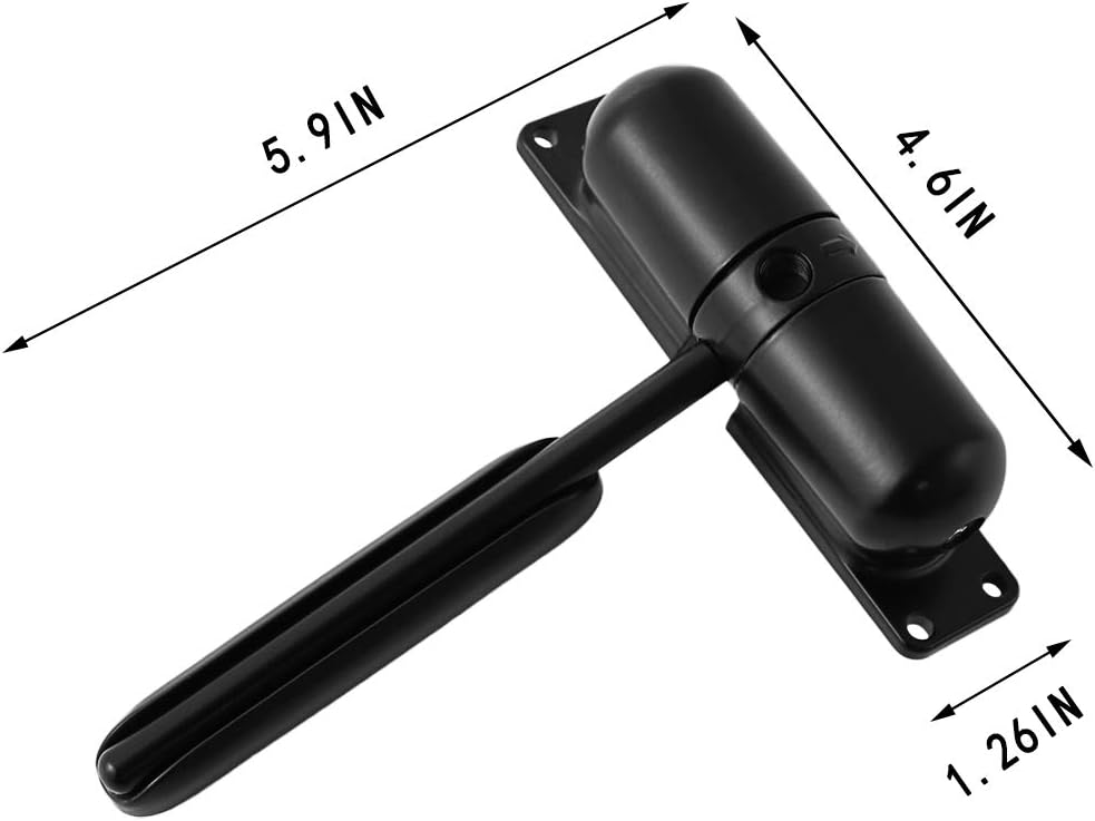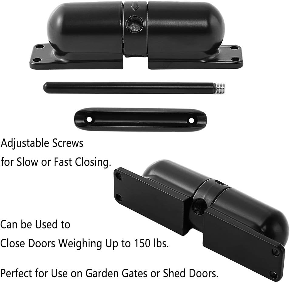 FÁCIL INSTALACIÓN – Con un cierre y una placa deslizante de plástico montados en la superficie, la instalación es muy sencilla. Este cierre de puerta de resorte puede usarse en puertas de hasta 150 libras y puede usarse en puertas de mano izquierda y derecha. Ajusta fácilmente la tensión en este cierre de puerta de resorte de seguridad.