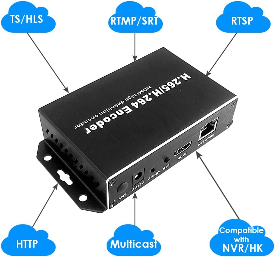 Applications & Protocols - Applicable not only for CCTV surveillance, but also for live broadcasting like video conference etc. With HLS(H.264 Only), you can also view live video on your smartphone directly with picture in picture. TCP/IP, DHCP, DNS, DDNS(3322, Oray), HLS, HTTP, HTTPS, RTP, RTSP, RTMP, SRT, TS, UDP, Multicast etc protocols supported. It's compatible with ONV/HK which allows it work with iVMS-4200/8700 and video recorded at H.265 with HK's NVR.