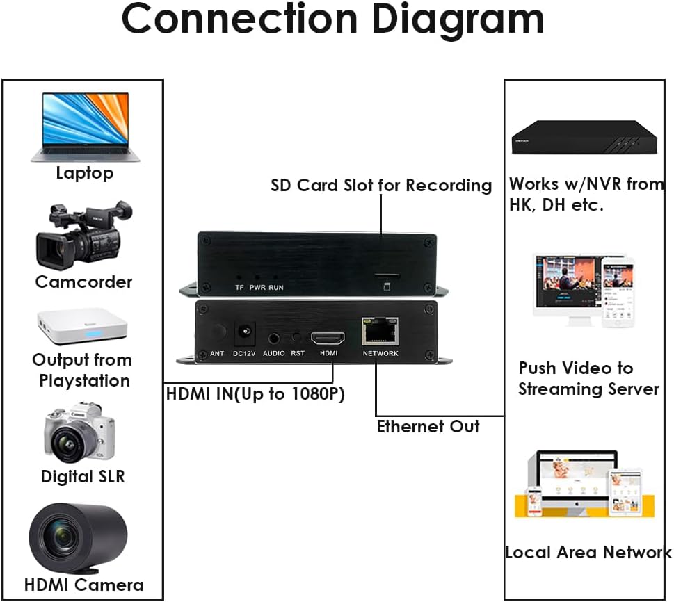 EXVIST H.265 1080P PoE HDMI Video Encoder W/SD Card Slot Max. 128G DDNS HTTP RTMP RTSP SRT TS UDP Compatible with ONV/HK Private Protool for IPTV Live Streaming to YouTube Facebook Vimeo