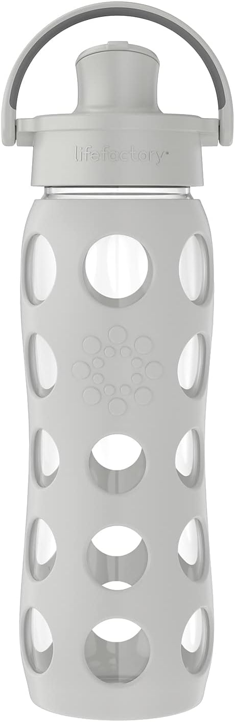 Lifefactory 22-Ounce Active Flip Cap Glass Water Bottle, 22oz, Cool Grey