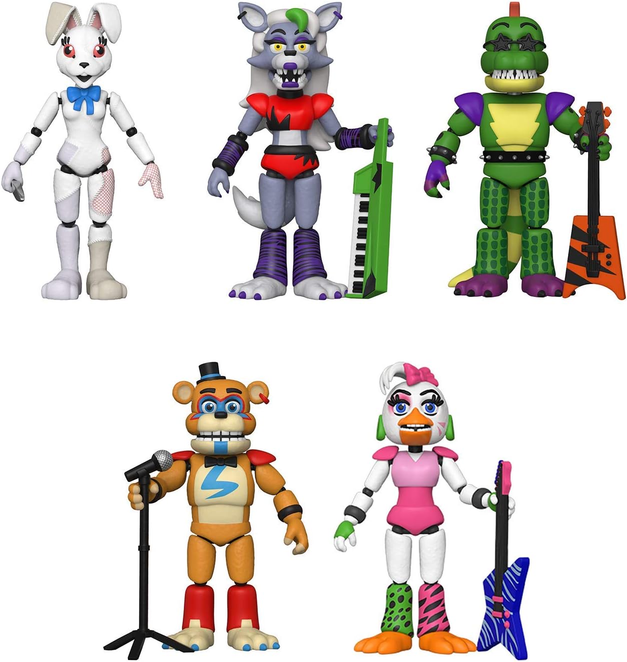 ¡Figuras de acción Funko! Set de 5 - Five Nights at Freddy's - Security Breach - Pizzaplex - Glamrock Chica, Glamrock Freddy, Montgomery Gator, Roxanne Wolf y Vanny