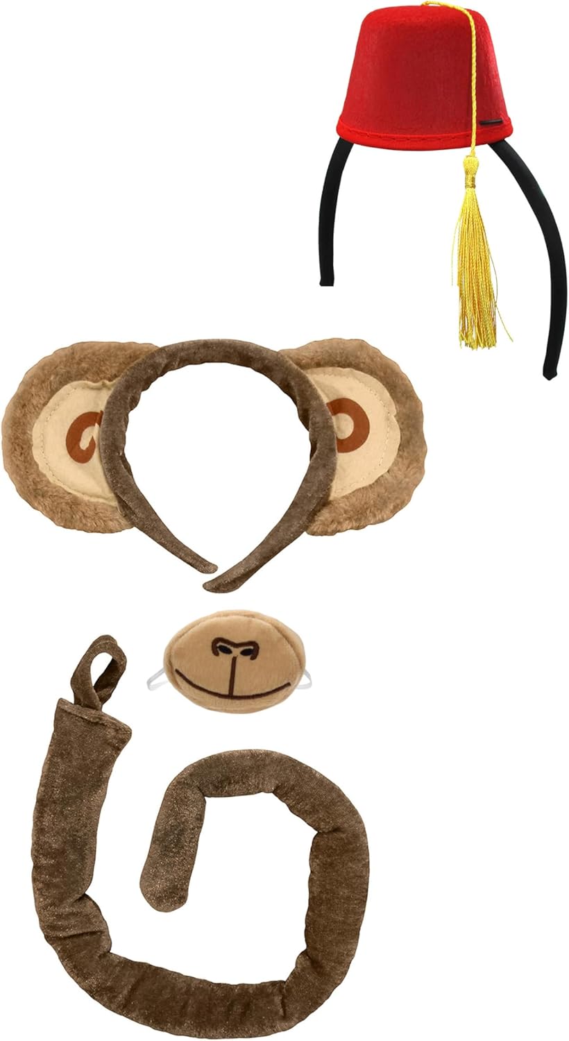 Nicky Bigs Novelties Unisex Adult Monkey in Fez Hat Kit Mini Headband Nose Tail Movie Costume Set