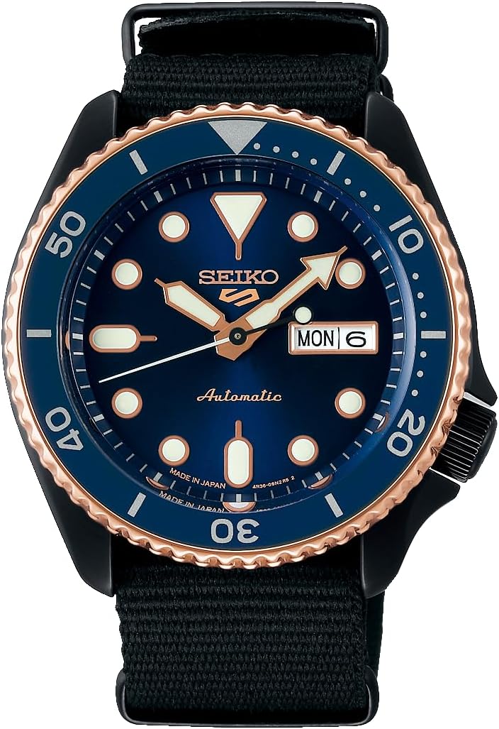 Dial Bezel : Blue, Case: Black & PG, Band: Black (Nylon)