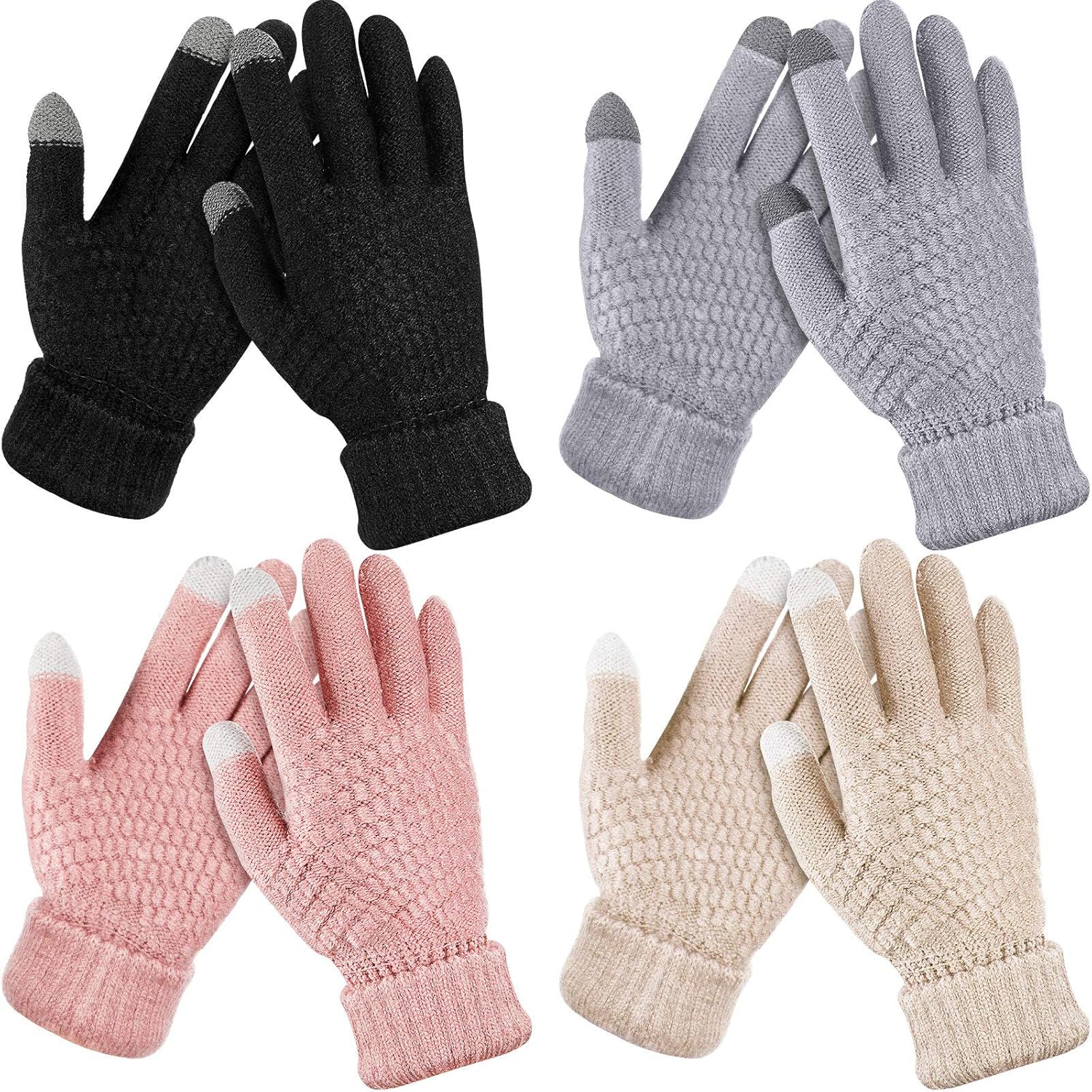 Geyoga 4 Pairs Women's Winter Touch Screen Gloves Soft Warm Fleece Lined Knit Elastic Cuff Texting Gloves