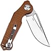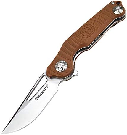Harnds Time Folding Knife with Sandvik 14C28N Steel Blade Pocket Knife with G10 Handle Camping Knife with Pocket Clip (Brown)