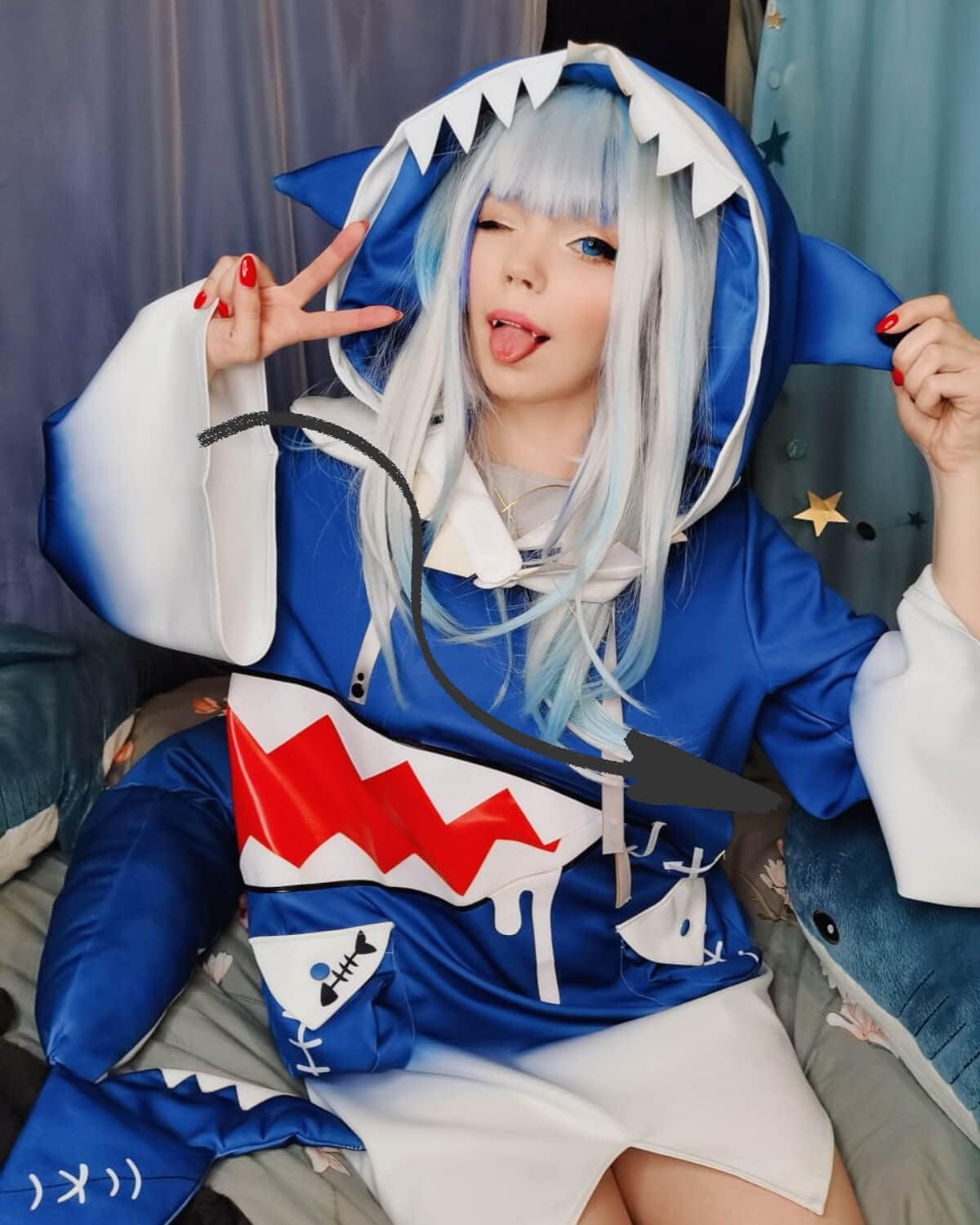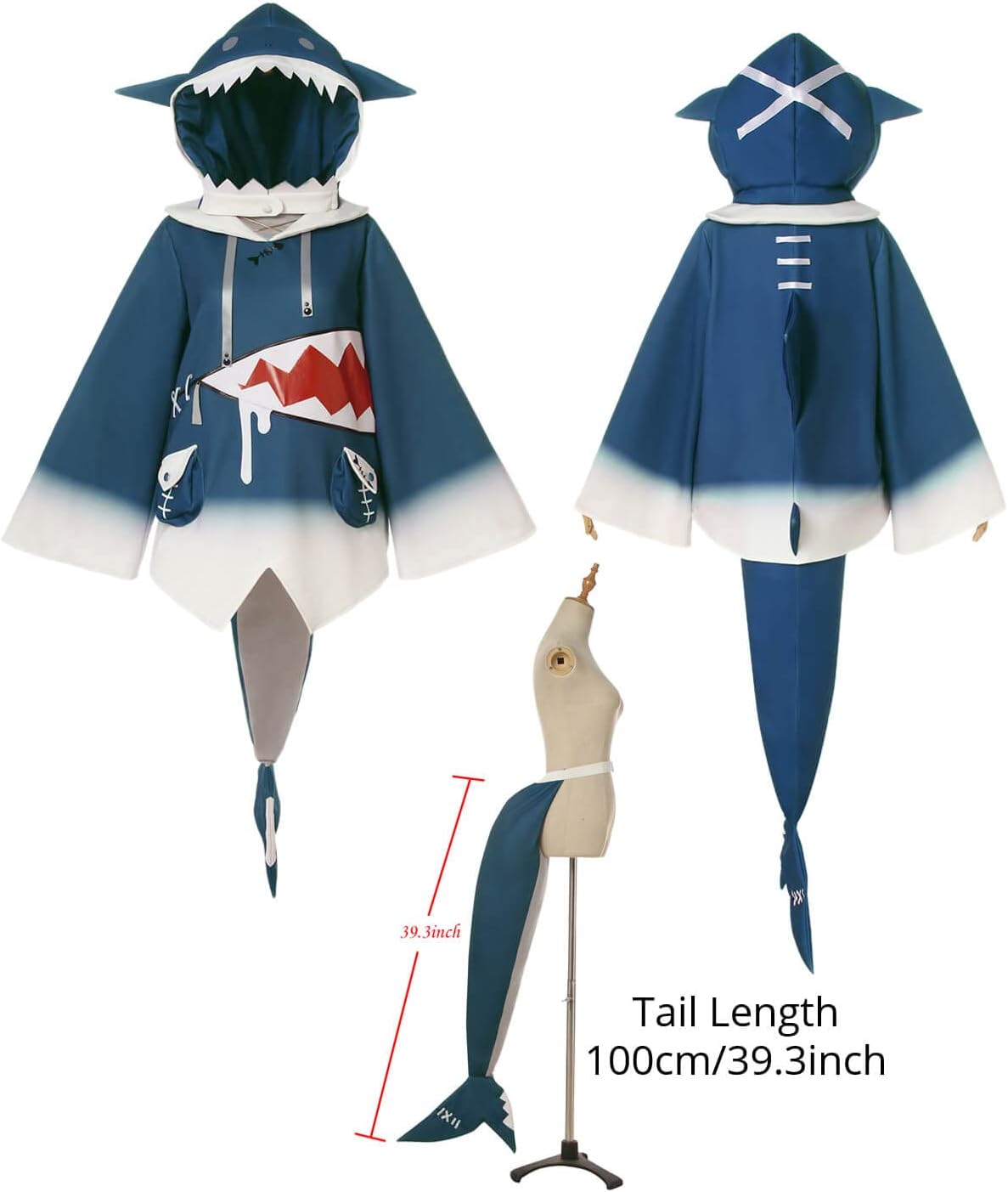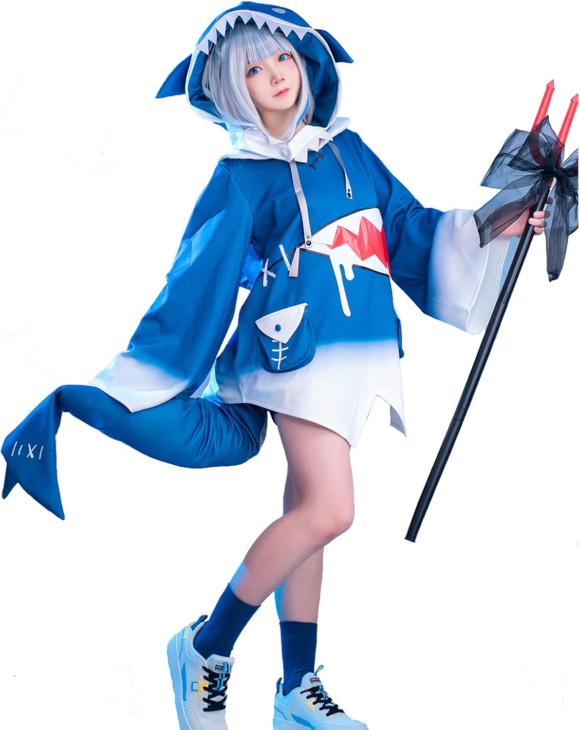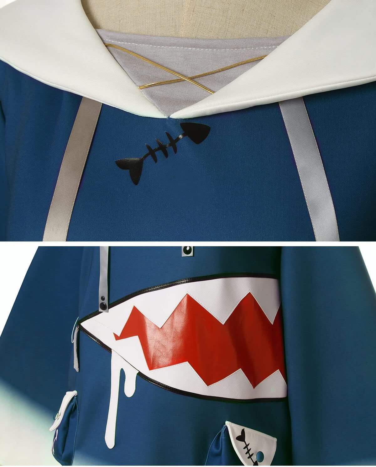 Nuoqi Gawr Gura Cosplay Costume Gawr Gura Shark Hoodie Jacket Outfit with Fish Tail