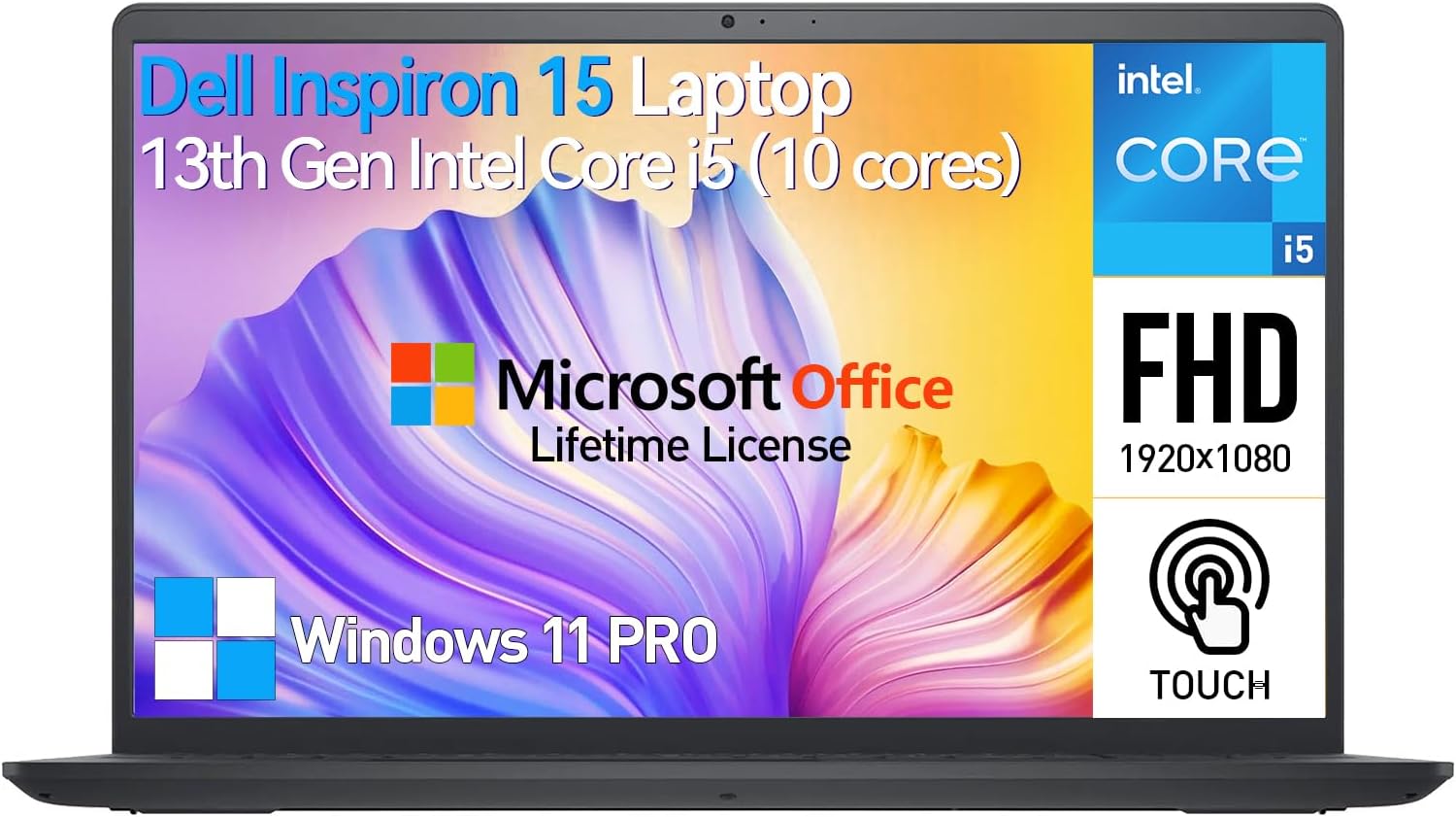 Dell Inspiron 15 3000 Touchscreen Laptop Computer, 15.6" FHD IPS Touch Screen Business Laptop PC, 13th Gen Intel Core i5 (10-Cores), Windows 11 Pro | Lifetime Office | 10-Key | 32GB RAM 2TB SSD
