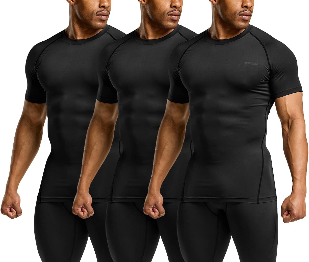 TSLA Men's UPF 50+ Quick Dry Short Sleeve Compression Shirts, Athletic Workout Shirt, Water Sports Rash Guard