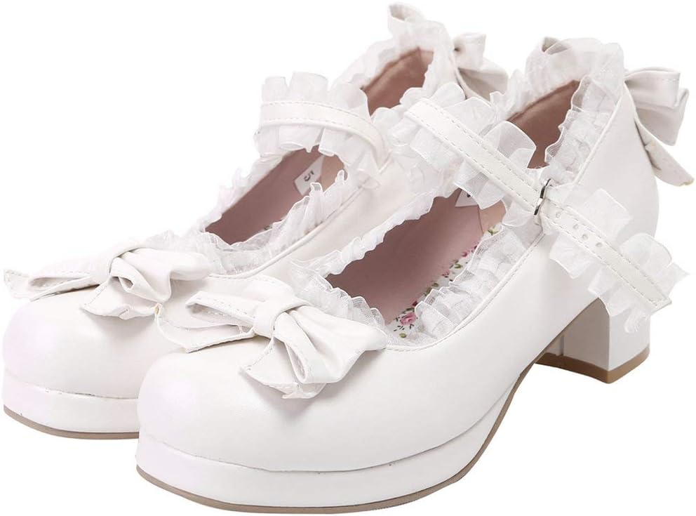 LUXMAX Women Kawaii Mid Block Heel Mary Jane Rockabilly Pumps with Bow Platform Chunky Heel Cute Sweet Shoes