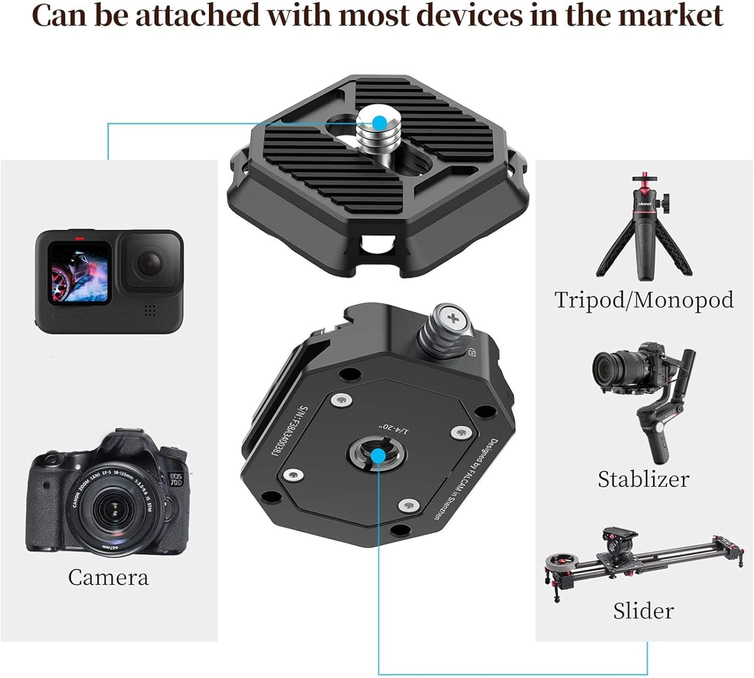 Placa de liberación rápida ULANZI F38 para cámara con rosca de tornillo de 1/4" a 3/8", Sistema de liberación rápida QR, Adaptador de montaje de trípode para cámara Sony Canon Monopod DSLR Slider DJI Cambiar entre estabilizador