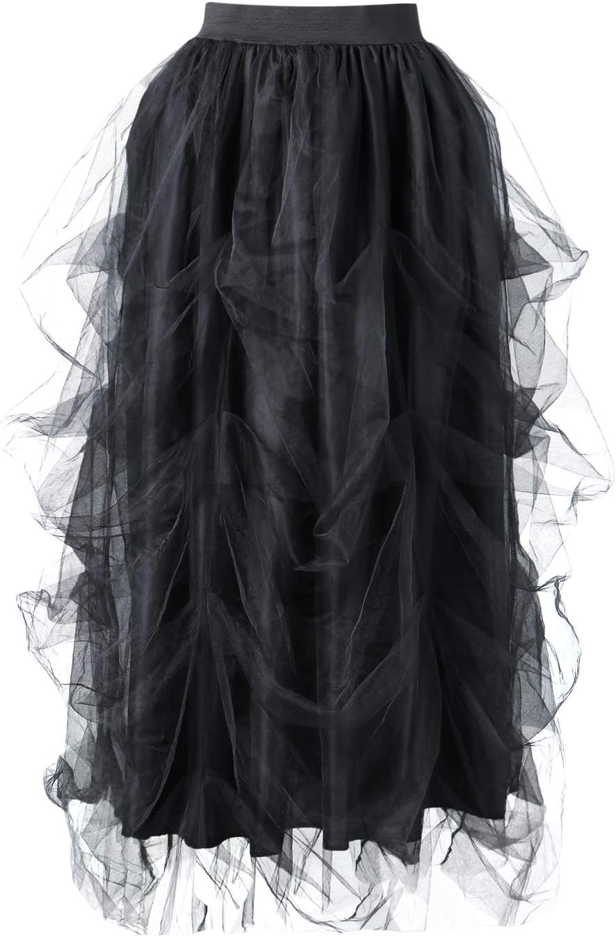 Vestido largo de tutú con abertura alta para mujer, falda larga de encaje de malla con volantes de tul, hasta el suelo, vestido de noche a capas, falda de fiesta
