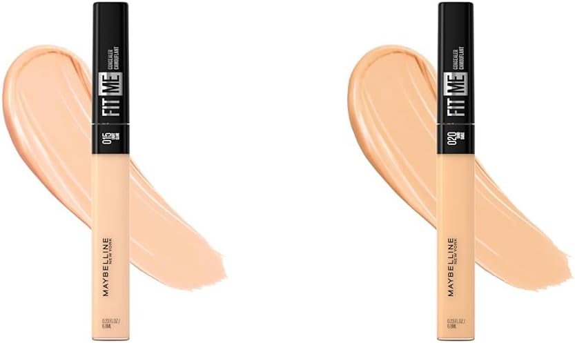 This concealer bundle from Maybelline New York includes two complementary shades of their popular Fit Me liquid concealer. The Light shade provides brighter highlighting and coverage for fairer skin tones. The Sand shade offers warmth and seamlessly matches tan or olive skin tones. Both oil-free concealers share an ultra-lightweight, breathable formula that provides natural-looking coverage without clogging pores. The translucent base and lightweight pigments allow the skin's natural texture and tones to show through. The 12 available shades match a wide range of skin tones to deliver a more even, flawless complexion. Use these concealers to cover blemishes, redness, under-eye circles, and to contour and highlight. As part of the Fit Me collection that includes complexion products for a flawless face, these concealers perfectly complement the Dewy+Smooth and Matte+Poreless foundations. For best results, use Garnier Micellar Water to gently remove makeup and prep skin before applying the Fit Me concealers and foundation. With versatile shade options, these concealers let your natural beauty shine through.
