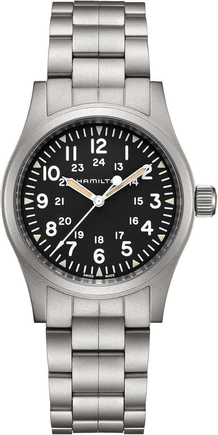 Hamilton Watch Khaki Field Mechanical 38mm Case, Black Dial, Silver Stainless Steel Bracelet (Model: H69439131)