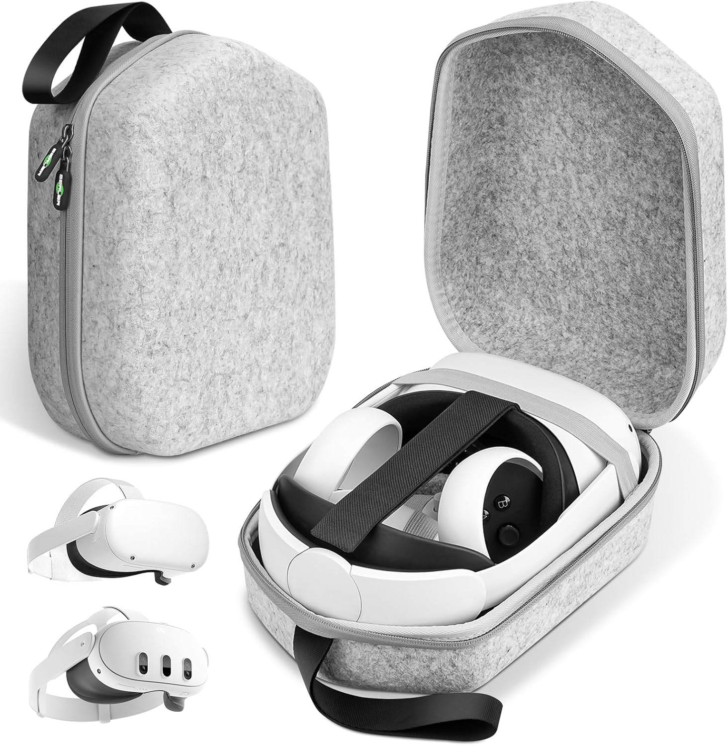 Funda Rígida Portátil Compatible con Meta Quest 3S/Quest 3/Oculus Quest 2/Vision Pro Accesorios Oficiales Originales/Strap de Élite para Gafas y Controlador de Realidad Virtual, Adecuada para Viajes y Almacenamiento en Casa