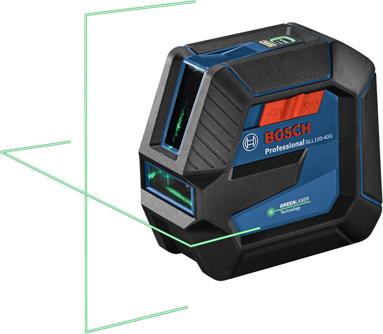 BOSCH GLL100-40G 100ft Green Cross-Line Laser, Self-Leveling, Adjustable L-Bracket Mount and Hard Case