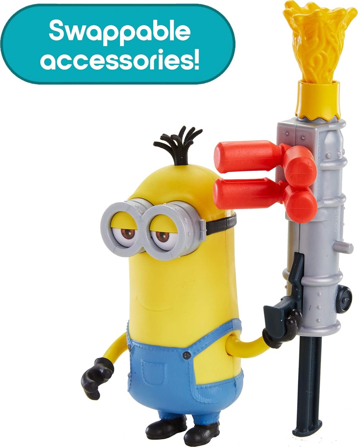 Figura de acción de Kevin Minions: The Rise of Gru Cheese Blaster de aproximadamente 4 pulgadas, juguete de personaje de película con lanzador y movimiento activado por doble botón, regalo para niños de 4 años o más