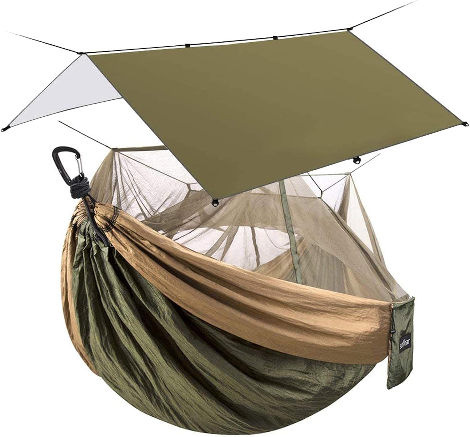 Sunyear Double Camping Hammock with Net & Sunyear Hammock Rain Fly Tent Tarp Provides Effective Protection Against Rain