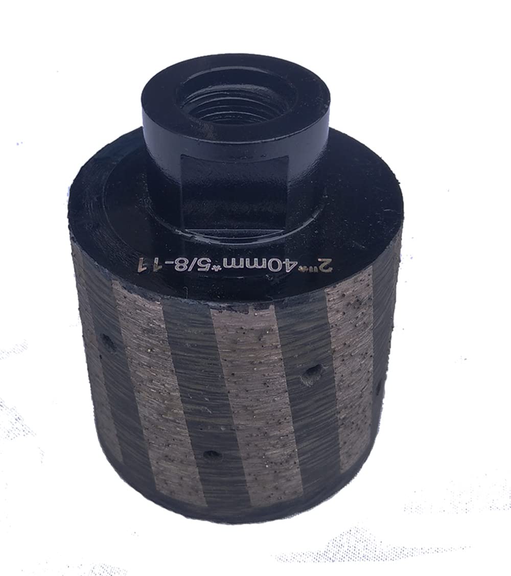 Diameter:2 inch , Length:40mm, 5/8-11 Thread.Grit:40/45,used for stone counter top sink hole calibration.Applicable machine : angle grinder.Aggressive and well balance, work steadily in a high rotating speed.
