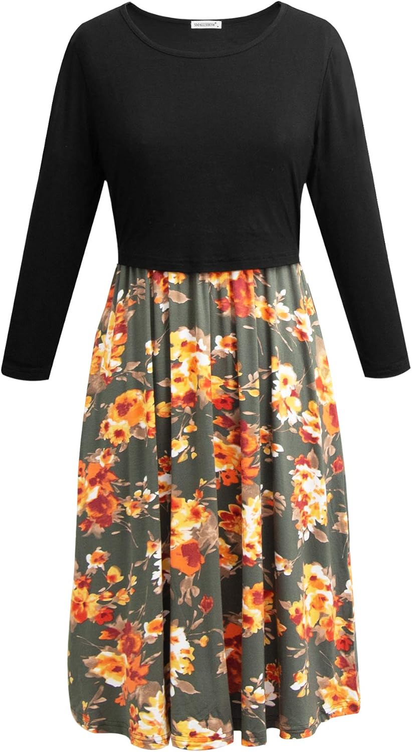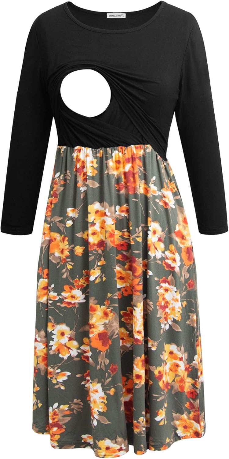 Smallshow Women's Maternity Nursing Dress 3/4 Sleeve Dress for Breastfeeding
