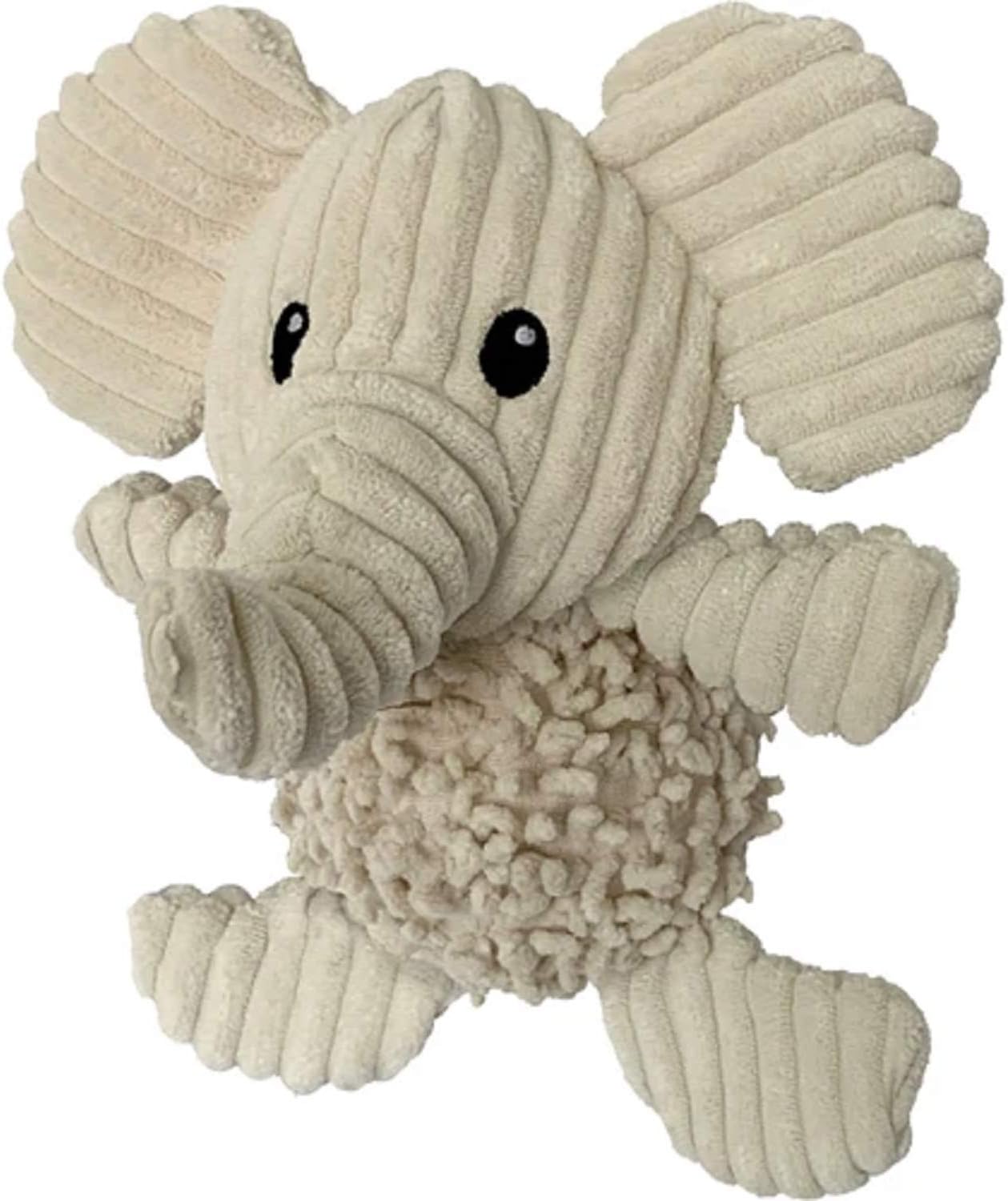 Pet Lou Durable Natural Nubby Plush Dog Toys with Squeaker and Crinkle Paper in Multi-Size (Natural Elephant - M, 10 Inch)